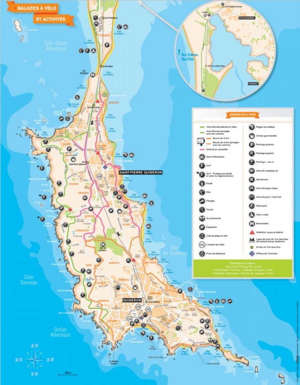 - Touristische Karte Quiberon - Fahrradausflüge und Wanderwege