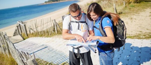 Die Wanderstrecke fängt offiziell am Gemeindeamt von La Trinité sur Mer an, aber Sie können den Spaziergang am Strand vom Campingplatz aus beginnen. Das Wanderdokument kann unten auf der Seite heruntergeladen werden.