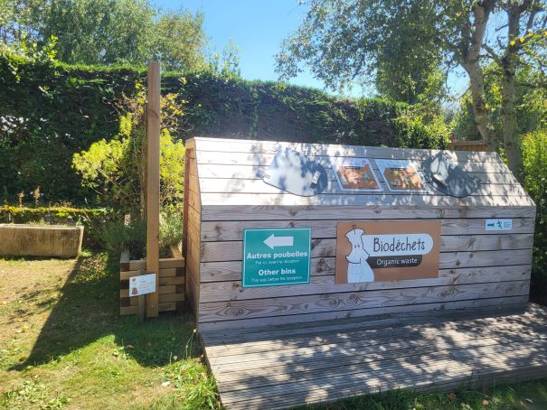 Ein Komposter befindet sich in der Nähe des Sanitärgebäudes 2. Gemäß den Normen für das Recycling von Bioabfällen können Sie dort all Ihre Obst- und Gemüseabfälle, Schalen, Eierschalen, Kaffeesatz (mit Filter), Teebeutel (ohne Karton), Reis, Nüsse usw. entsorgen. Zögern Sie nicht, unser Team an der Rezeption zu fragen, wenn Sie sich unsicher sind, was in den Komposter darf.